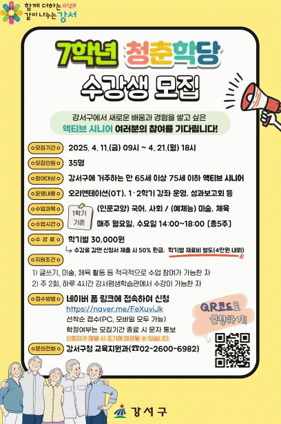 [NWS¹æ¼Û=Çѽ¸ñ ±âÀÚ]¼­¿ï °­¼­±¸´Â Àλý 2¸·À» ÁغñÇÏ´Â ¾×Ƽºê ½Ã´Ï¾îµéÀÇ Æò»ýÇнÀÀ» À§ÇØ ¡®7Çгâ ûÃáÇд硯À» ¿î¿µÇÑ´Ù. ÇàÁ¤¾ÈÀüºÎ¿¡ µû¸£¸é À۳⠸» ±âÁØ ´ëÇѹα¹Àº 65¼¼ ÀÌ»ó °í·ÉÀÚ ºñÁßÀÌ 20%¸¦ ³Ñ´Â Ãʰí·É»çȸ¿¡ ÁøÀÔÇß¡¦