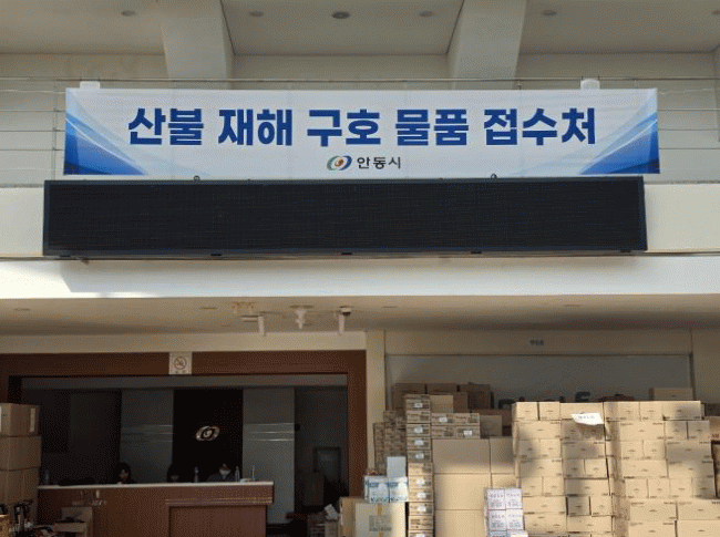 [NWS¹æ¼Û=Çѽ¸ñ ±âÀÚ]¾Èµ¿½Ã´Â »êºÒ·Î ÀÎÇØ »îÀÇ ÅÍÀüÀ» ÀÒÀº ÀÌÀç¹ÎÀ» µ½±â À§ÇÑ Àü±¹ °¢ÁöÀÇ ±¸È£¹°Ç°À» °ü¸®Çϱâ À§ÇØ, ¾Èµ¿Ã¼À°°ü µ¿¹®¿¡ Á¢¼öó¸¦ º°µµ·Î ¸¶·ÃÇØ ¿î¿µÇϰí ÀÖ´Ù. ¿ª´ë ÃÖ¾ÇÀÇ »êºÒ·Î ´ëÇÇÇÑ ÀÌÀç¹ÎÀ» µ½±â À§ÇØ Àü¡¦