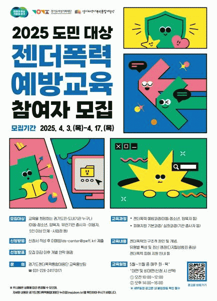 [»çȸ] °æ±âµµ, 'µµ¹Î ´ë»ó Á¨´õÆø·Â ¿¹¹æ±³À°' Âü¿©ÀÚ 17ÀϱîÁö ¸ðÁý |2025. 04.10