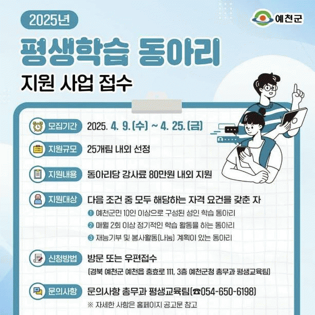 [»çȸ] ¿¹Ãµ±º, 2025³â 'Æò»ýÇнÀ µ¿¾Æ¸® Áö¿ø»ç¾÷' ½Åû Á¢¼ö |2025. 04.10