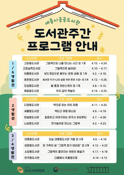 [NWS¹æ¼Û=Çѽ¸ñ ±âÀÚ]¼¼Á¾Æ¯º°ÀÚÄ¡½Ã °ø°øµµ¼­°üÀÌ ¿À´Â 12ÀϺÎÅÍ 18ÀϱîÁö µµ¼­°ü ÁÖ°£À» ¸Â¾Æ ½Ã¹ÎÀ» ´ë»óÀ¸·Î Àü½Ã?üÇè?±³À° µî ´Ù¾çÇÑ µ¶¼­¹®È­ Çà»ç¸¦ ¿î¿µÇÑ´Ù. µµ¼­°ü ÁÖ°£Àº ¸Å³â 4¿ù 12ÀϺÎÅÍ 18ÀϱîÁö µµ¼­°ü¿¡ ´ëÇÑ ±¹¹ÎÀÇ¡¦