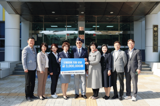 [NWS¹æ¼Û=Çѽ¸ñ ±âÀÚ]¾ç»ê½ÃÀçÇⱺÀÎȸ¡¤ÀçÇⱺÀο©¼ºÈ¸´Â ¿µ³²Áö¿ª »êºÒ·Î ÇÇÇØ¸¦ ÀÔÀº Áö¿ªÁÖ¹ÎÀ» À§ÇØ ½á´Þ¶ó¸ç Áö³­ 8ÀÏ ¾ç»ê½ÃûÀ» ¹æ¹®ÇØ ¼º±Ý 300¸¸¿øÀ» ±âŹÇß´Ù. À̹ø ¼º±ÝÀº »êºÒ·Î Å« ÇÇÇØ¸¦ ÀÔÀº Áö¿ªÁֹεéÀÇ ¾î·Á¿òÀ» ÇÔ¡¦