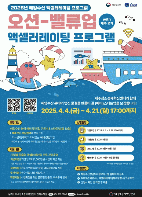 [»çȸ] Á¦ÁÖâÁ¶°æÁ¦Çõ½Å¼¾ÅÍ, ÇØ¾ç¼ö»ê ¾×¼¿·¯·¹ÀÌÆÃ ÇÁ·Î±×·¥'¿À¼Ç-¹ë·ù¾÷ with jeju' Âü°¡±â¾÷ ¸ðÁý |2025. 04.09
