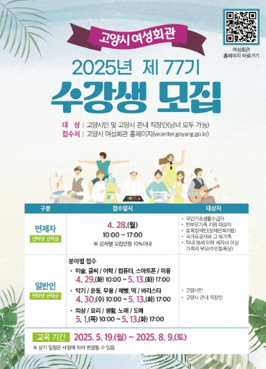 [»çȸ] °í¾ç½Ã ¿©¼ºÈ¸°ü, 2025³â Á¦77±â ±³À° ¼ö°­»ý ¸ðÁý |2025. 04.09