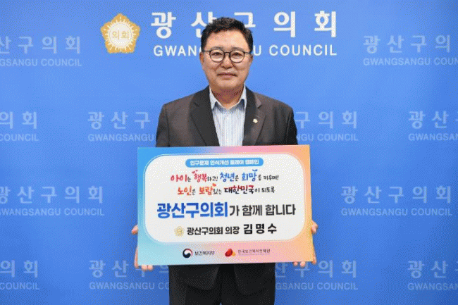 [NWS¹æ¼Û=Çѽ¸ñ ±âÀÚ] ±è¸í¼ö ±¤ÁÖ ±¤»ê±¸ÀÇȸ ÀÇÀåÀÌ 9ÀÏ Àα¸¹®Á¦ Àνݳ¼±À» À§ÇÑ ¸±·¹ÀÌ Ä·ÆäÀο¡ µ¿ÂüÇß´Ù. º¸°Çº¹ÁöºÎ¿Í Çѱ¹º¸°Çº¹ÁöÀÎÀç¿øÀÌ °øµ¿ ÁÖ°üÇÑ ¡®Àα¸¹®Á¦ Àνݳ¼± Ä·ÆäÀΡ¯Àº ÀúÃâ»ê¡¤°í·ÉÈ­ µîÀÇ Àα¸¹®Á¦¸¦ ¾Ë¸®¡¦