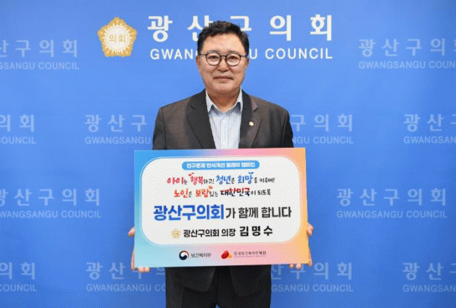 [NWS¹æ¼Û=Çѽ¸ñ ±âÀÚ] ±è¸í¼ö ±¤ÁÖ ±¤»ê±¸ÀÇȸ ÀÇÀåÀÌ 9ÀÏ Àα¸¹®Á¦ Àνݳ¼±À» À§ÇÑ ¸±·¹ÀÌ Ä·ÆäÀο¡ µ¿ÂüÇß´Ù. º¸°Çº¹ÁöºÎ¿Í Çѱ¹º¸°Çº¹ÁöÀÎÀç¿øÀÌ °øµ¿ ÁÖ°üÇÑ ¡®Àα¸¹®Á¦ Àνݳ¼± Ä·ÆäÀΡ¯Àº ÀúÃâ»ê¡¤°í·ÉÈ­ µîÀÇ Àα¸¹®Á¦¸¦ ¾Ë¸®¡¦