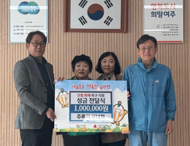 [NWS¹æ¼Û=Çѽ¸ñ ±âÀÚ]¿©Áֽà ±Ý»ç¸é Áַϸ® ºÎ³àȸ°¡ Áö³­ 8ÀÏ ±Ý»ç¸éÇàÁ¤º¹Áö¼¾Å͸¦ ¹æ¹®ÇÏ¿© ¿µ³²Áö¿ª ´ëÇü »êºÒ ÇÇÇØ ÁֹεéÀ» µ½±â À§ÇÑ Æ¯º°¼º±Ý 100¸¸¿øÀ» °æ±â»çȸº¹Áö°øµ¿¸ð±Ýȸ¿¡ ±âŹÇß´Ù. À̹ø Ưº°¼º±ÝÀº ºÎ³àȸ ȸ¿øÀÌ º½¡¦