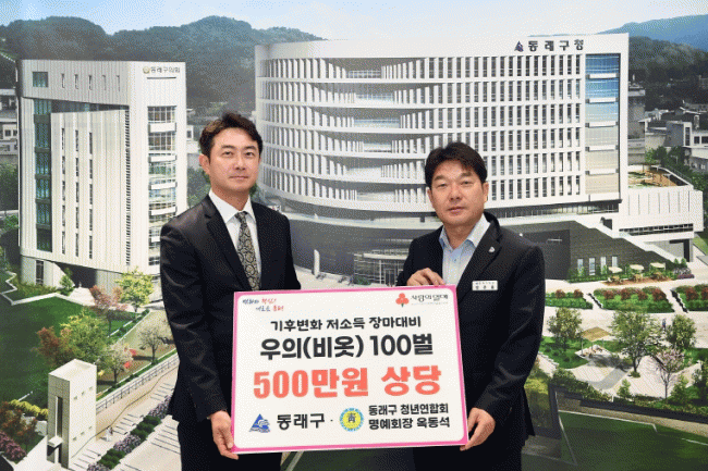 [NWS¹æ¼Û=Çѽ¸ñ ±âÀÚ]ºÎ»ê µ¿·¡±¸´Â Áö³­ 3ÀÏ µ¿·¡±¸ û³â¿¬ÇÕȸ ¸í¿¹È¸Àå ¿Áµ¿¼®À¸·ÎºÎÅÍ À帶öÀ» ´ëºñÇÏ¿© Àú¼Òµæ ¼¼´ë¸¦ À§ÇÑ ¿ìºñ 100¹ú(500¸¸ ¿ø »ó´ç)¸¦ ±âŹ¹Þ¾Ò´Ù°í ¹àÇû´Ù. ¿Áµ¿¼® ·¹Àοþ¾î&Dz¿þ¾î Á¦Á¶»ç ¿ìºñÆÑÅ丮 ´ëÇ¥´Â¡¦