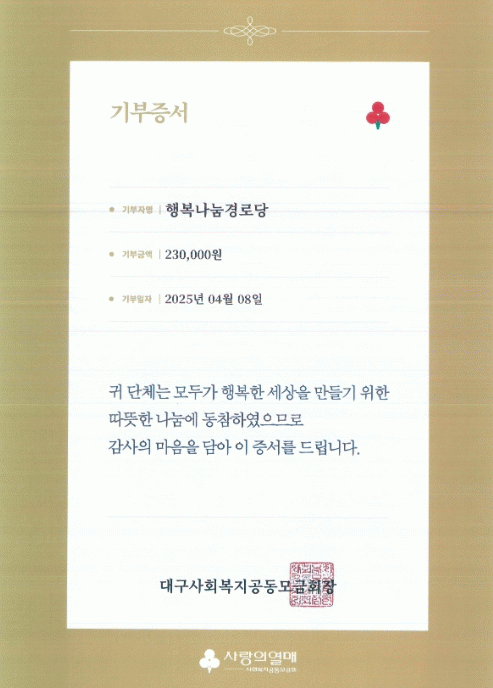 [NWS¹æ¼Û=Çѽ¸ñ ±âÀÚ]´ë±¸ ºÏ±¸ ÅÂÀü1µ¿ ±¤½ÅÇÁ·Î±×·¹½º ³» Çູ³ª´® °æ·Î´ç(ȸÀå ¹è¿µÁ¡)Àº ´ëÇü »êºÒ·Î ÇÇÇØ¸¦ ÀÔÀº ¿µ³²Áö¿ª ÀÌÀç¹ÎÀ» µ½±â À§ÇØ 4¿ù 8ÀÏ(È­) »êºÒ ÇÇÇØº¹±¸ ¼º±Ý 23¸¸¿øÀ» ÅÂÀü1µ¿ÇàÁ¤º¹Áö¼¾ÅÍ¿¡ ±âŹÇß´Ù. ¹è¿µÁ¡¡¦