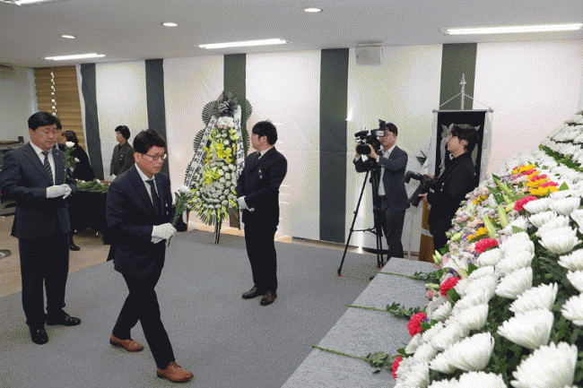 [NWS¹æ¼Û=Çѽ¸ñ ±âÀÚ] ¹è±¤½Ä ºÏ±¸Ã»ÀåÀº 4¿ù 9ÀÏ ¿ÀÀü 9½Ã ¹«ÅÂÁ¶¾ßµ¿ÇàÁ¤º¹Áö¼¾ÅÍ 2Ãþ¿¡ ¼³Ä¡µÈ ¼­º¯µ¿ »êºÒÁøÈ­ Çï±âÁ¶Á¾»ç Ã߸ðºÐÇâ¼Ò¸¦ ã¾Æ ±¸ °£ºÎ °ø¹«¿ø ¹× Áֹεé°ú ÇÔ²² Èñ»ýÀÚÀÇ ³ÌÀ» ±â¸®¸ç ÇåÈ­Çϰí Âü¹èÇß´Ù. ͺ Á¤¡¦