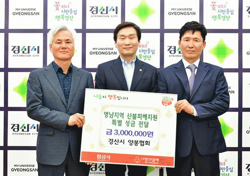 [NWS¹æ¼Û=Çѽ¸ñ ±âÀÚ]°æ»ê½Ã ¾çºÀÇùȸ´Â Áö³­ 8ÀÏ °æ»ê½ÃûÀ» ¹æ¹®ÇÏ¿© ÃÖ±Ù ¿µ³²Áö¿ª »êºÒ ÇÇÇØ ÀÌÀç¹Î µ½±â¿Í ÇÇÇØÁö¿ª º¹±¸ Áö¿øÀ» À§ÇÑ ¼º±Ý 300¸¸¿øÀ» ±âŹÇß´Ù. ¹Ú±ÙÈÆ ȸÀåÀº ¡°¿¹»óÄ¡ ¸øÇÑ »êºÒ·Î ÇÇÇØ¸¦ ÀÔÀº Áֹε鿡°Ô À§·Î¡¦