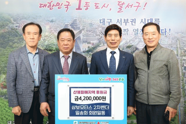[NWS¹æ¼Û=Çѽ¸ñ ±âÀÚ] ´ë±¸ ´Þ¼­±¸°¡ »ïº¸¸ðÅͽº 2Â÷º¥´õ ÀϼÛȸ ȸ¿øµé·ÎºÎÅÍ »êºÒÇÇÇØÁö¿ª¿¡ Áö¿øÇØ ´Þ¶ó¸ç ÈÄ¿ø±Ý 420¸¸¿øÀ» ±âŹ ¹Þ¾Ò´Ù°í 9ÀÏ ¹àÇû´Ù. ÀϼÛȸ´Â °ü³» 12°³ ±â¾÷ÀÌ 2000³â¿¡ °á¼ºÇØ ²ÙÁØÇÑ Áö¿ª»çȸ°øÇåȰµ¿À» Âü¡¦