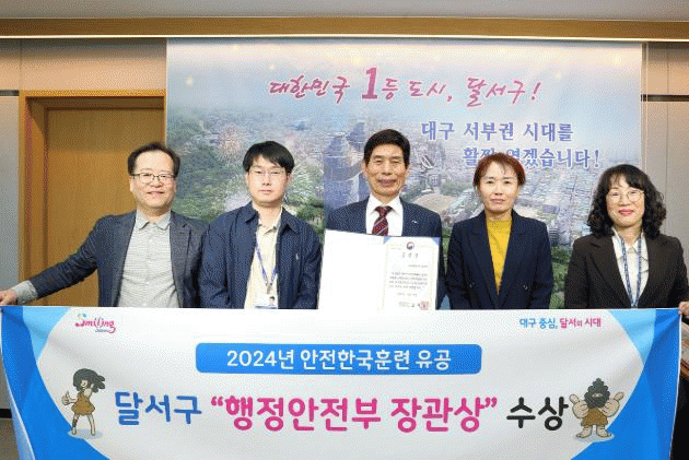 [NWS¹æ¼Û=Çѽ¸ñ ±âÀÚ] ´ë±¸ ´Þ¼­±¸°¡ ÇàÁ¤¾ÈÀüºÎ°¡ ÁÖ°üÇÏ´Â 2024³â Àç³­´ëÀÀ ¾ÈÀüÇѱ¹ÈÆ·Ã Æò°¡¿¡¼­ Áö¿ª¿¡¼­ À¯ÀÏÇÏ°Ô Àå°ü»óÀ» ¼ö»óÇÏ´Â ¿µ¿¹¸¦ ¾È¾Ò´Ù. ´Þ¼­±¸´Â 7°³ÀÇ Æò°¡¿µ¿ª¿¡¼­ ¸¸Á¡À» µæÁ¡ÇÏ¸ç ´ë±¸½Ã ±¸?±º Áß ÃÖ°íÁ¡¼ö¸¦¡¦