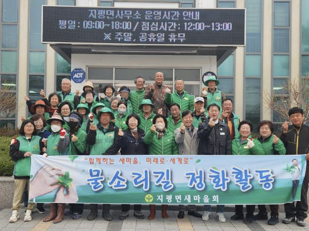 [NWS¹æ¼Û=Çѽ¸ñ ±âÀÚ]ÁöÆò¸é »õ¸¶À»ÇùÀÇȸ´Â º»°ÝÀûÀÎ º½À» ¸Â¾Æ 8ÀÏ ¿ÀÀü ¹°¼Ò¸®±æÀ» Æ÷ÇÔÇÑ ÁöÆòõ ÀÏ¿ø¿¡¼­ ȯ°æÁ¤È­ Ȱµ¿À» ÆîÃÆ´Ù°í ¹àÇû´Ù. À̳¯ Çà»ç¿¡´Â ÁöÆò¸é »õ¸¶À»ÇùÀÇȸ ȸ¿ø 60¿© ¸íÀÌ Âü¿©ÇØ ÁöÆòõ ÁÖº¯¿¡ ¹æÄ¡µÈ °¢Á¾¡¦
