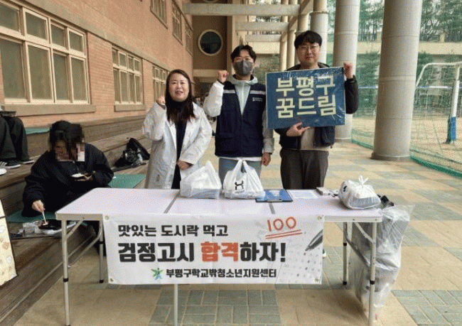 [NWS¹æ¼Û=Çѽ¸ñ ±âÀÚ]ºÎÆò±¸ Çб³¹Ûû¼Ò³âÁö¿ø¼¾ÅÍÀº Áö³­ 5ÀÏ ¿ÃÇØ Á¦1ȸ °ËÁ¤°í½Ã¸¦ ÀÀ½ÃÇÏ´Â ¼Ò¼Ó û¼Ò³â 40¸íÀ» À§ÇØ ÀÀ¿ø¿¡ ³ª¼¹´Ù. ²Þµå¸²Àº À̳¯ °¢ ½ÃÇèÀå¿¡ ã¾Æ°¡ ½ÃÇè¿¡ ÀÀ½ÃÇϴ û¼Ò³âµéÀ» ÀÀ¿øÇϸç Á¡½É µµ½Ã¶ôÀ» Áö¿øÇß¡¦