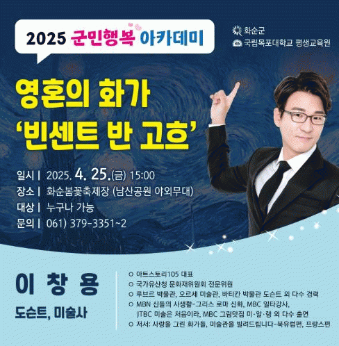 [NWS¹æ¼Û=Çѽ¸ñ ±âÀÚ]È­¼ø±ºÀº ¿À´Â 25ÀÏ ±Ý¿äÀÏ ¿ÀÈÄ 3½Ã '2025 È­¼ø º½²É ÃàÁ¦Àå(³²»ê°ø¿ø ¾ß¿Ü °ø¿¬Àå)¿¡¼­ ÀÌâ¿ë °­»ç¸¦ ÃÊÃ»ÇØ ±º¹ÎÇູ ¾ÆÄ«µ¥¹Ì 2ȸÂ÷¸¦ ÁøÇàÇÑ´Ù°í ¹àÇû´Ù. À̹ø ¾ÆÄ«µ¥¹Ì 2ȸÂ÷ °­¿¬ ÁÖÁ¦´Â ¡°¿µÈ¥ÀÇ È­°¡ ºó¡¦