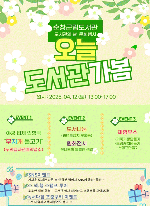 [»çȸ] ¼øÃ¢±º¸³µµ¼­°ü, ¿À´Â 12ÀÏ¡®¿À´Ãµµ¼­°ü°¡º½¡¯¹®È­Çà»ç °³ÃÖ |2025. 04.09