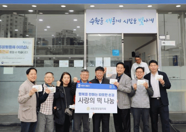 [NWS¹æ¼Û=Çѽ¸ñ ±âÀÚ]Áö³­ 8ÀÏ ¼ö¿ø½Ã ÆÈ´Þ±¸ »çÅëÆÈ´ÞÇùÀÇȸ´Â ¼ö¿ø¿ª ´Ù½Ã¼­±â¼¾ÅÍ¿¡¼­ ³ë¼÷ÀÎÀ» À§ÇÑ ¶± ³ª´® Çà»ç¸¦ ÁøÇàÇϸç ÀÌ¿ô »ç¶ûÀ» ½ÇõÇß´Ù. À̹ø Çà»ç´Â ½Ä»ç¸¦ °Å¸£±â ½¬¿î ³ë¼÷Àε鿡°Ô ÀÛÁö¸¸ µû¶æÇÑ Á¤À» ³ª´©±â À§ÇØ ¡¦