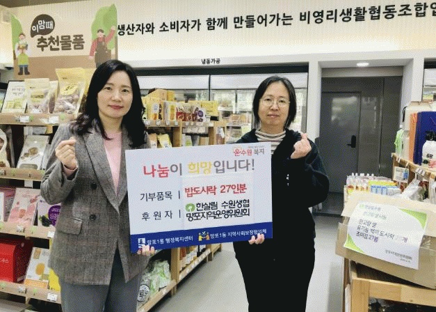 [NWS¹æ¼Û=Çѽ¸ñ ±âÀÚ]¼ö¿ø½Ã ¿µÅ뱸 ¸ÁÆ÷1µ¿Àº Çѻ츲 ¼ö¿ø»ýÇù ¸ÁÆ÷Áö¿ª¿î¿µÀ§¿øÈ¸¿¡¼­ Áö³­ 8ÀÏ, ¸ÁÆ÷1µ¿ Ãë¾à°èÃþÀ» À§ÇØ ¹äµµ½Ã¶ô(Á¶¹Ì±è Æ÷ÇÔ) 27ÀκÐÀ» ÈÄ¿øÇß´Ù°í ¹àÇû´Ù. Çѻ츲 ¸ÁÆ÷¿î¿µÀ§´Â ¸Å´Þ Á¤±âÀûÀ¸·Î ¹äµµ½Ã¶ô, ¼³±â¶±¡¦