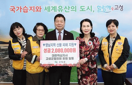 [NWS¹æ¼Û=Çѽ¸ñ ±âÀÚ]°í¼º±ºÀº 4¿ù 9ÀÏ ´ëÇÑÀû½ÊÀÚ»ç °í¼º±ºÇùÀÇȸ°¡ ¿µ³²Áö¿ª »êºÒ ÇÇÇØ Áö¿ø ¼º±Ý 208¸¸ ¿øÀÇ ±âŹÇß´Ù°í ¹àÇû´Ù. À̹ø ¼º±Ý ±âŹÀº ¿µ³²Áö¿ªÀ» µ¤Ä£ »êºÒ·Î ÇÇÇØ¸¦ ÀÔÀº Áö¿ª Áֹε鿡°Ô µµ¿òÀ» µå¸®±â À§ÇØ È¸¿øµé¡¦