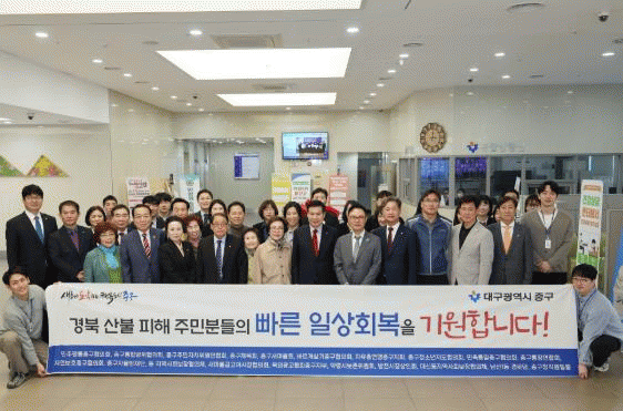 [NWS¹æ¼Û=Çѽ¸ñ ±âÀÚ] ´ë±¸ Áß±¸´Â ÃÖ±Ù °æºÏ ºÏºÎÁö¿ª¿¡¼­ ¹ß»ýÇÑ ´ë±Ô¸ð »êºÒ·Î ÇÇÇØ¸¦ ÀÔÀº ÀÌÀç¹ÎÀ» Áö¿øÇϱâ À§ÇØ ÃÑ 4,116¸¸¿øÀÇ ¼º±ÝÀ» °æºÏ»çȸº¹Áö°øµ¿¸ð±Ýȸ¸¦ ÅëÇØ °æ»óºÏµµÃ»¿¡ Àü´ÞÇß´Ù°í ¹àÇû´Ù. ¼º±Ý Àü´Þ¿¡ ¾Õ¼­ Áö³­¡¦