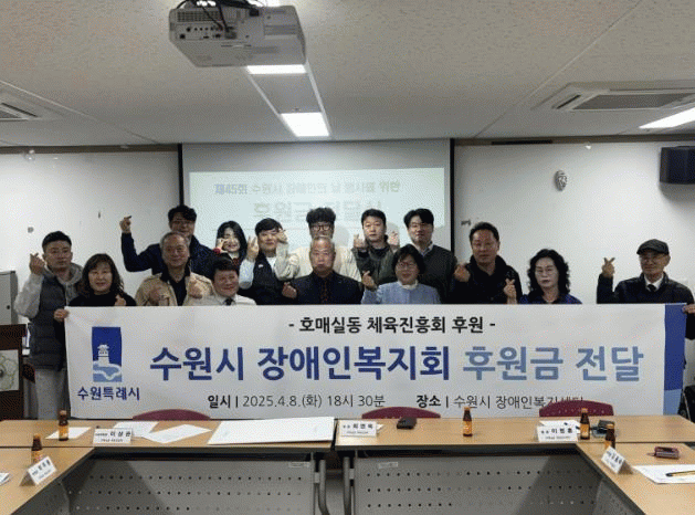 [»çȸ] ¼ö¿ø½Ã ±Ç¼±±¸ È£¸Å½Çµ¿ üÀ°ÁøÈïȸ, Àå¾ÖÀÎÀÇ ³¯ ¸Â¾Æ ¼ö¿ø½Ã Àå¾ÖÀκ¹Áöȸ¿¡ ÈÄ¿ø±Ý Àü´Þ |2025. 04.09