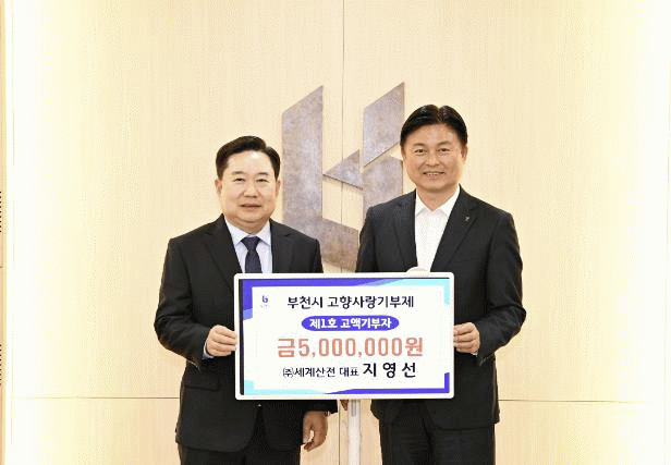 [NWS¹æ¼Û=Çѽ¸ñ ±âÀÚ]ºÎõ½Ã´Â ¢ß¼¼°è»êÀü Áö¿µ¼± ´ëÇ¥°¡ °íÇâ»ç¶û±âºÎ±Ý 500¸¸ ¿øÀ» ±âŹÇÏ¸ç ºÎõ½Ã °íÇâ»ç¶û±âºÎÁ¦ Á¦1È£ °í¾×±âºÎÀÚ·Î À̸§À» ¿Ã·È´Ù°í 9ÀÏ ¹àÇû´Ù. ƯÈ÷ Áö¿µ¼± ´ëÇ¥´Â À̹ø ±âºÎ·Î ¹ÞÀº 150¸¸ ¿ø »ó´çÀÇ ¿ÀÁ¤³óÇù¡¦