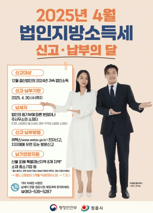 [»çȸ] Á¤À¾½Ã, ¹ýÀÎÁö¹æ¼Òµæ¼¼ ÁýÁ߽Űí±â°£ ¿î¿µ¡¦ 4¿ù 30ÀϱîÁö |2025. 04.09