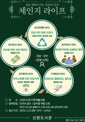 [»çȸ] õ¾È½Ã ½Å¹æµµ¼­°ü, Àι®ÇРƯ°­ ¡®Ã¼ÀÎÁö ¶óÀÌÇÁ¡¯ ¿î¿µ |2025. 04.09