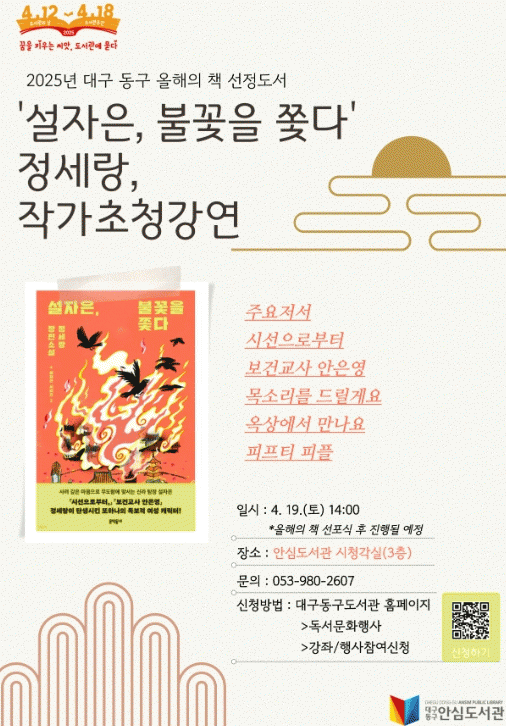 [»çȸ] ´ë±¸ µ¿±¸ ¿ÃÇØÀÇ Ã¥ ¼±Æ÷½Ä ¹× Á¤¼¼¶û ÀÛ°¡ ÃÊû °­¿¬ |2025. 04.09