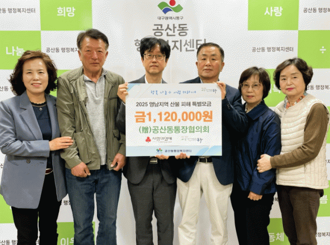 [»çȸ] ´ë±¸ µ¿±¸ °ø»êµ¿ ÅëÀåÇùÀÇȸ, ¿µ³²Áö¿ª »êºÒ ÇÇÇØ ¸ð±Ý¾× 112¸¸¿ø ±âŹ |2025. 04.09