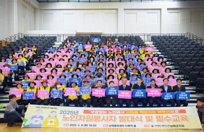 [NWS¹æ¼Û=Çѽ¸ñ ±âÀÚ] »ç)´ëÇѳëÀÎȸ ³²ÇرºÁöȸ´Â Áö³­ 8ÀÏ ³²Çع®È­¼¾ÅÍ ´Ù¸ñÀûȦ¿¡¼­ 8°³ ´Üü, 160¿© ¸íÀÇ ´Ü¿øÀÌ ¸ðÀÎ °¡¿îµ¥ ¡®2025 ³ëÀÎÀÚ¿øºÀ»ç´Ü ¹ß´ë½Ä ¹× ³ëÀÎÀÚ¿øºÀ»çÀÚ ±³À°¡¯À» ½Ç½ÃÇß´Ù. ³²Çرº ³ëÀÎÀÚ¿øºÀ»ç´ÜÀº 2012¡¦