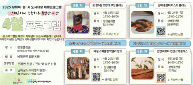 [»çȸ] ¡®³²ÇØ Æ¯º°½Ã(÷å.ܬ.ãÁ) üÇèÇÁ·Î±×·¥¡¯ ¼ö°­»ý ¸ðÁý |2025. 04.09