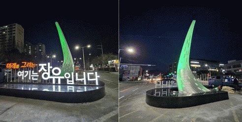 [NWS¹æ¼Û=Çѽ¸ñ ±âÀÚ]±èÇØ½Ã´Â ÀåÀ¯1µ¿À» »ó¡ÇÏ´Â Á¶Çü¹°À» ¼³Ä¡Çß´Ù°í 9ÀÏ ¹àÇû´Ù. Á¶Çü¹°Àº ÀåÀ¯ÀÇ ¹ßÀüÇÏ´Â ¹Ì·¡¸¦ ±×·Á³ª°£´Ù´Â Àǹ̷Π¸¸µé¾îÁ³À¸¸ç, ÀåÀ¯(Jangyu)ÀÇ ¾ËÆÄºª ¡®J¡¯¸¦ º×À¸·Î ±×¸®´Â ÇüŸ¦, ¡®U¡¯¸¦ È­´Ü¸ð¾çÀ¸·Î¡¦