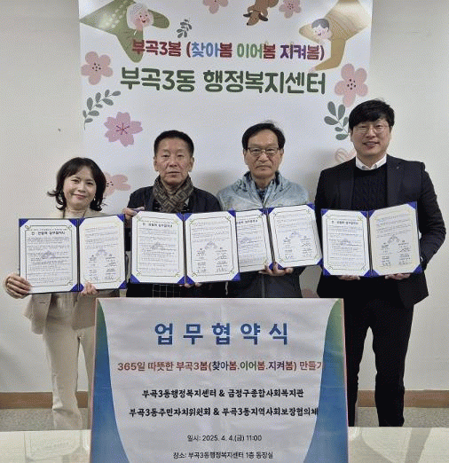 [»çȸ] '365ÀÏ µû¶æÇÑ ºÎ»ê½Ã ±ÝÁ¤±¸ ºÎ°î3º½(ã¾Æº½¡¤À̾¡¤ÁöÄѺ½) ¸¸µé±â' ¹Î¡¤°ü Çù·Â ¾÷¹«Çù¾à ü°á |2025. 04.09