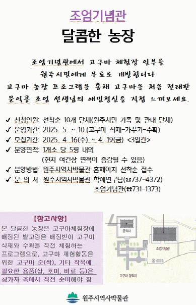 [»çȸ] ¿øÁֽÿª»ç¹Ú¹°°ü, '´ÞÄÞÇÑ ³óÀå' üÇèÇÁ·Î±×·¥ Âü°¡ÀÚ ¸ðÁý |2025. 04.09