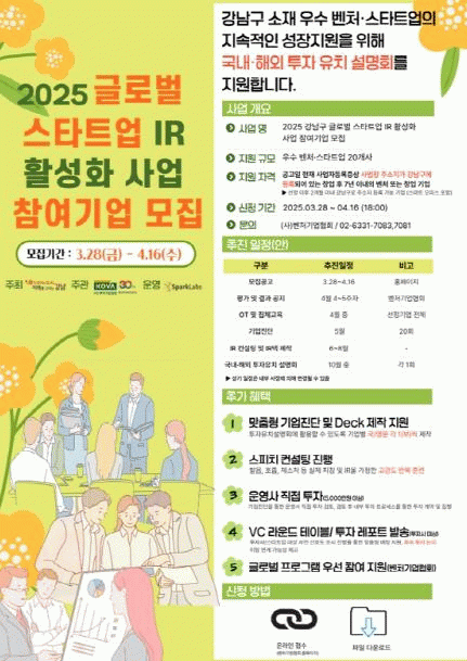 [»çȸ] °­³²±¸, ½ºÅ¸Æ®¾÷ ÅõÀÚÀ¯Ä¡ º»°Ý Áö¿ø¡¦ 30°³»ç ±Û·Î¹ú ÁøÃâ µ½´Â´Ù |2025. 04.09