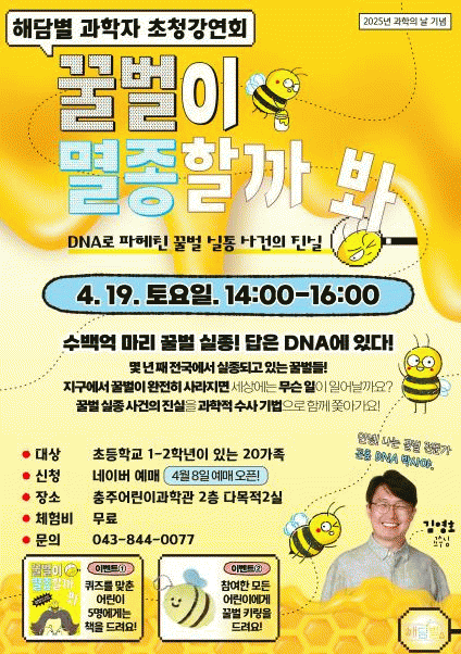 [NWS¹æ¼Û=Çѽ¸ñ ±âÀÚ]ÃæÁֽ𡠿ÇÏ´Â ÃæÁ־À̰úÇаüÀº Á¦58ȸ °úÇÐÀÇ ³¯À» ±â³äÇØ ¿À´Â 19ÀÏ ¿ÀÈÄ 2½Ã, Áö¿ª ³» ¾î¸°ÀÌ¿Í °¡Á·À» ´ë»óÀ¸·Î ¡®Çش㺰 °úÇÐÀÚ ÃÊû°­¿¬È¸¡¯¸¦ °³ÃÖÇÑ´Ù. À̹ø °­¿¬È¸´Â ȯ°æ°ú »ýŰ迡 ´ëÇÑ °ü½ÉÀ»¡¦