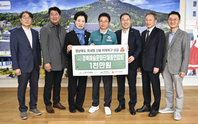 [NWS¹æ¼Û=Çѽ¸ñ ±âÀÚ]°æºÏ¿¹¼ú¹®È­´ÜüÃÑ¿¬ÇÕȸ°¡ 8ÀÏ °æºÏµµÃ»À» ¹æ¹®ÇØ °æºÏ Áö¿ª¿¡ ¹ß»ýÇÑ ´ë±Ô¸ð »êºÒ ÇÇÇØº¹±¸¸¦ À§ÇÑ ¼º±Ý 1,000¸¸¿øÀ» Àü´ÞÇß´Ù. ±Ç¿À¼ö ÃÑ¿¬ÇÕȸÀ带 ºñ·ÔÇÑ °æºÏ ¿¹¼ú´Üü ÁÖ¿ä ÀλçµéÀÌ Âü¼®ÇØ Àü´ÞÇÑ À̹ø ¡¦
