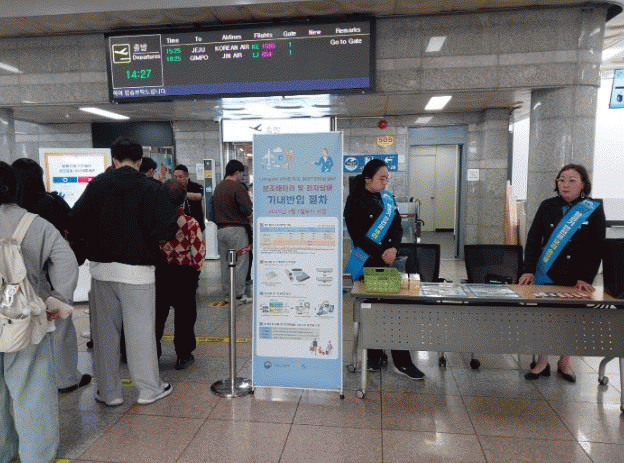 [NWS¹æ¼Û=Çѽ¸ñ ±âÀÚ]»çõ½Ã ³ì»ö¾î¸Ó´Ï¿¬ÇÕȸ´Â »çõ°øÇ× ¾ÈÀüÀ» À§ÇØ º¸Á¶¹èÅ͸® ±â³» ¹ÝÀÔ ÀýÂ÷ È«º¸¿¡ ³ª¼­±â·Î Çß´Ù. ÀÌ´Â, Áö³­ 1¿ù 28ÀÏ ±èÇØ°øÇ׿¡¼­ ÀÌ·ú ´ë±â ÁßÀÌ´ø ¿¡¾îºÎ»ê ±â³»¿¡¼­ È­Àç°¡ ¹ß»ýÇÏÀÚ ±¹ÅäºÎ¿¡¼­ ¸¶·ÃÇÑ ¡¦