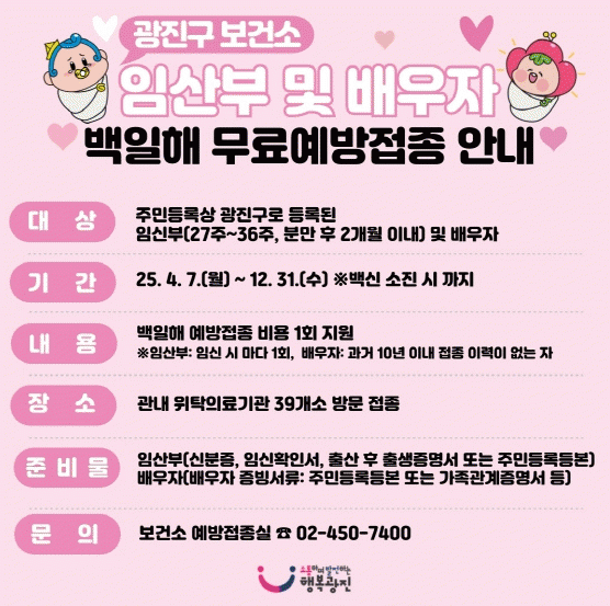 [NWS¹æ¼Û=Çѽ¸ñ ±âÀÚ]±¤Áø±¸°¡ °ü³» ÀÓ»êºÎ¿Í ¹è¿ìÀÚ¸¦ ´ë»óÀ¸·Î ¹éÀÏÇØ ¹«·á ¿¹¹æÁ¢Á¾À» ¿¬Áß ½Ç½ÃÇÑ´Ù. ¹éÀÏÇØ´Â ¹éÀÏÇØ±Õ¿¡ ÀÇÇÑ °¨¿°À¸·Î ¹ßº´Çϴ ȣÈí±â ÁúȯÀ¸·Î, ¼Ò¾Æ °¨¿°º´ Áß Àü¿°·ÂÀÌ °­Çϰí ÇÕº´ÁõÀÌ ½ÉÇÑ Áúȯ¿¡ ¼ÓÇÑ´Ù.¡¦