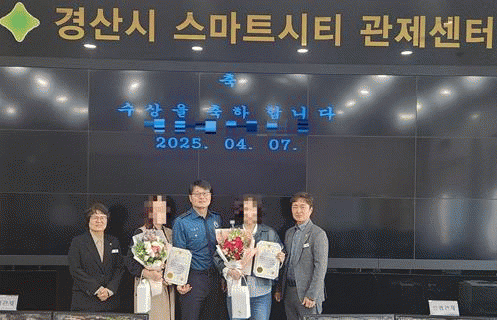 [NWS¹æ¼Û=Çѽ¸ñ ±âÀÚ]°æ»ê½Ã´Â Áö³­ 7ÀÏ ½º¸¶Æ®½ÃƼ(CCTV) °üÁ¦¼¾ÅÍ °üÁ¦¿ä¿ø 2¸íÀÌ Áö¿ª »çȸ ¾ÈÀü¿¡ ±â¿©ÇÑ °ø·Î·Î °¢°¢ °æ»ê°æÂû¼­Àå ǥâ°ú °¨»çÀåÀ» ¼ö»óÇß´Ù°í ¹àÇû´Ù. °üÁ¦¿ä¿ø A¾¾´Â Áö³­ 3¿ù 8ÀÏ ¿ÀÀü 2½Ã°æ, ³²³à 8¸íÀÌ µÚ¾û¡¦