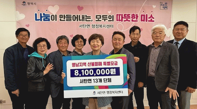 [NWS¹æ¼Û=Çѽ¸ñ ±âÀÚ]ÃÖ±Ù ¿µ³²Áö¿ª¿¡¼­ ¹ß»ýÇÑ ´ë±Ô¸ð »êºÒ·Î ÀÎÇØ ¸¹Àº ÀÌÀç¹ÎÀÌ ¹ß»ýÇϰí ÇÇÇØ°¡ È®»êµÊ¿¡ µû¶ó, ÆòÅýà ¼­Åº¸éÀº »êºÒ ÇÇÇØ º¹±¸¸¦ À§ÇÑ Æ¯º°¸ð±ÝÀ» ÁøÇàÇϰí, ¼­Åº¸é 13°³ ´Üü¿Í ÃÖÁøÅ ÀÌÀåÀÇ µû¶æÇÑ ¶æÀ» ¸ð¾Æ 8¡¦