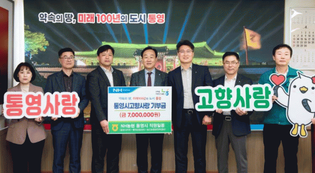 [NWS¹æ¼Û=Çѽ¸ñ ±âÀÚ]Å뿵½Ã´Â Áö³­ 7ÀÏ °ü³» NH³óÇù Á÷¿ø(70¸í)ÀÌ °íÇâ»ç¶û±âºÎ±ÝÀ¸·Î 700¸¸ ¿øÀ» ±âºÎÇß´Ù°í ¹àÇû´Ù. À̹ø ±âºÎ¿¡´Â NH³óÇù Å뿵½ÃÁöºÎ¡¤Å뿵±ÝÀ¶¼¾ÅÍ¡¤³ó½Åº¸Å뿵±Ç¿ª¼¾ÅÍ ÀÓÁ÷¿øµéÀÌ Âü¿©ÇßÀ¸¸ç, ³óÇù¿¡¼­´Â 2023¡¦