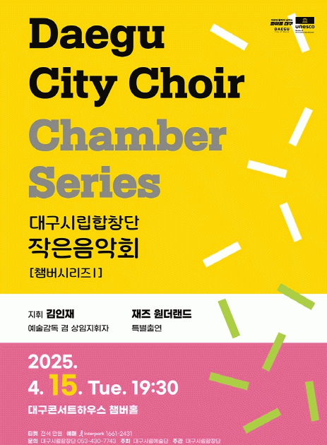 [NWS¹æ¼Û=Çѽ¸ñ ±âÀÚ] ´ë±¸½Ã¸³ÇÕâ´Ü(¿¹¼ú°¨µ¶ °â »óÀÓÁöÈÖÀÚ ±èÀÎÀç)ÀÌ ¿À´Â 4¿ù 15ÀÏ ¿ÀÈÄ 7½Ã 30ºÐ, ´ë±¸Äܼ­Æ®ÇϿ콺 è¹öȦ¿¡¼­ ±âȹ¿¬ÁÖ ¡®ÀÛÀº À½¾Çȸ¡¯ °ø¿¬À» °³ÃÖÇÑ´Ù. ´ë±¸½Ã¸³ÇÕâ´ÜÀÌ ±âȹÇÑ Ã¨¹öȦ °ø¿¬Àº °ü°´°ú Á» ´õ¡¦
