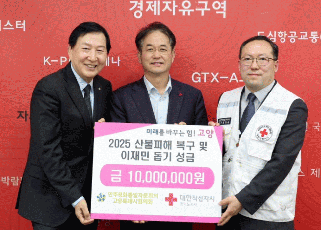 [NWS¹æ¼Û=Çѽ¸ñ ±âÀÚ]°í¾çƯ·Ê½Ã´Â Áö³­ 7ÀÏ, °í¾ç½Ãû ¿­¸°½ÃÀå½Ç¿¡¼­ ¹ÎÁÖÆòÈ­ÅëÀÏÀÚ¹®È¸ÀÇ °í¾ç½ÃÇùÀÇȸ¿Í ¿µ³²Áö¿ª »êºÒ ÇÇÇØº¹±¸¸¦ À§ÇÑ ¼º±Ý Àü´Þ½ÄÀ» °³ÃÖÇß´Ù°í ¹àÇû´Ù. À̳¯ ¹ÎÁÖÆòÈ­ÅëÀÏÀÚ¹®È¸ÀÇ °í¾ç½ÃÇùÀÇȸ´Â ÀÚ¹®À§¿øµéÀÌ¡¦