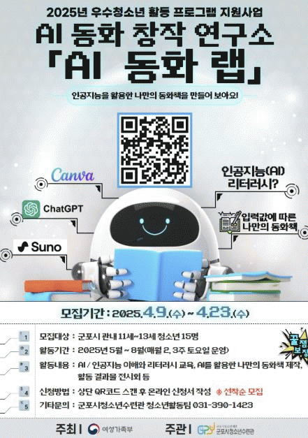 [»çȸ] (Àç)±ºÆ÷½Ãû¼Ò³âÀç´Ü ±ºÆ÷½Ãû¼Ò³â¼ö·Ã°ü 2025³â ¿ì¼ö û¼Ò³âȰµ¿ ÇÁ·Î±×·¥ Áö¿ø »ç¾÷ 'AI µ¿È­ âÀÛ¿¬±¸¼Ò 'AI µ¿È­ ·¦''Âü°¡ÀÚ ¸ðÁý |2025. 04.08