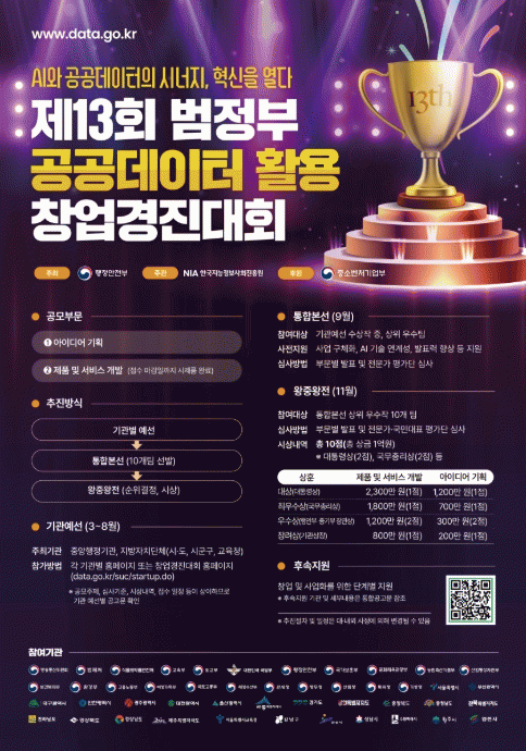 [NWS¹æ¼Û=ÇãÀº¼­ ±âÀÚ]ÇàÁ¤¾ÈÀüºÎ´Â 48°³ ±â°ü ¿¹¼±À» ½ÃÀÛÀ¸·Î, ¡®Á¦13ȸ ¹üÁ¤ºÎ °ø°øµ¥ÀÌÅÍ È°¿ë â¾÷°æÁø´ëȸ¡¯¸¦ °³ÃÖÇÑ´Ù°í ¹àÇû´Ù. À̹ø ´ëȸ´Â ¡®AI¿Í °ø°øµ¥ÀÌÅÍÀÇ ½Ã³ÊÁö, Çõ½ÅÀ» ¿­´Ù¡¯¸¦ ÁÖÁ¦·Î ÀΰøÁö´É(AI) Çõ½Å¼º Æò°¡Áö¡¦