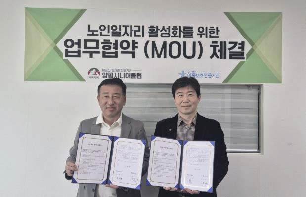 [NWS¹æ¼Û=Çѽ¸ñ ±âÀÚ]¾çÆò½Ã´Ï¾îŬ·´Àº 4ÀÏ °æ±â±¤Á־Ƶ¿º¸È£Àü¹®±â°ü°ú Áö¿ª»çȸ ³» ¾Æµ¿ º¸È£¿Í ¾çÆò±º ¾î¸£½ÅµéÀÇ ¾ÈÁ¤ÀûÀÎ ÀÏÀÚ¸® »ç¾÷ ¹ßÀüÀ» À§ÇØ ¾÷¹«Çù·Â Çù¾àÀ» ü°áÇß´Ù°í ¹àÇû´Ù. ³ëÀÎ ÀÏÀÚ¸® »ç¾÷ Áß Çб³, ¾î¸°ÀÌÁý, µ¹º½¡¦