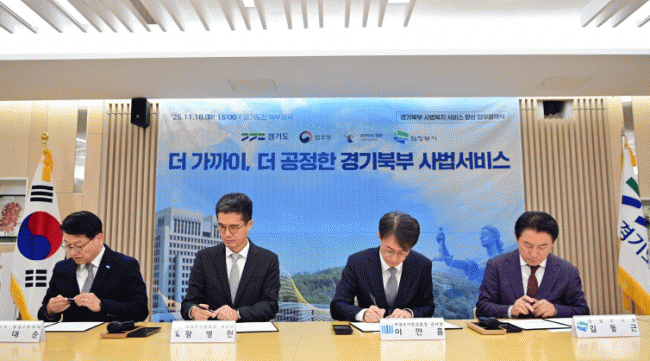 [NWS¹æ¼Û=Çѽ¸ñ ±âÀÚ]ÀÇÁ¤ºÎ½Ã´Â 11¿ù 18ÀÏ °æ±âµµÃ» ºÏºÎû»ç¿¡¼­ ¹ý¹«ºÎ, ¹ý¿øÇàÁ¤Ã³, °æ±âµµ¿Í ÇÔ²² ¡®°æ±âºÏºÎ »ç¹ýº¹Áö ¼­ºñ½º Çâ»óÀ» À§ÇÑ ¾÷¹«Çù¾à¡¯À» ü°áÇß´Ù. À̳¯ Çù¾à½Ä¿¡´Â ±èµ¿±Ù ½ÃÀå, Ȳº´Çå ÀÇÁ¤ºÎÁö¹æ¹ý¿ø ¹ý¿øÀå,¡¦